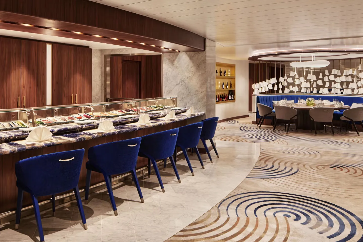 UMI UMA is a celebrated specialty dining experience aboard Crystal, crafted by the renowned Master Chef Nobuyuki (Nobu) Matsuhisa. Set within a sleek, contemporary atmosphere, the restaurant offers an inspired fusion of Asian flavors and culinary traditions, delivering a refined journey through the tastes of the Orient.