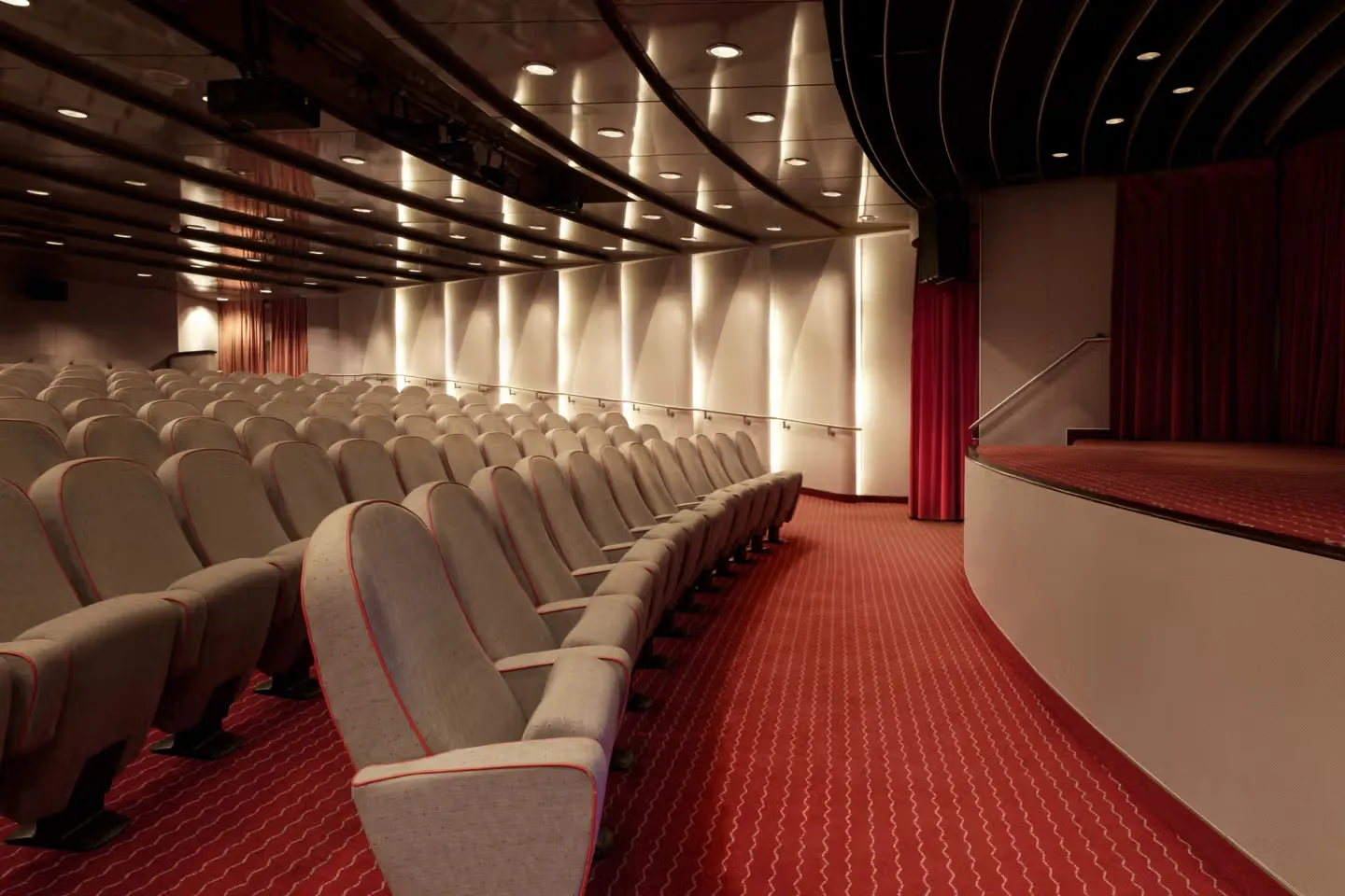 Experience the magic of the big screen at Hollywood Theatre—a stylish onboard cinema showcasing newly released films, live sports, engaging guest lectures, and select religious services in a comfortable, modern setting.