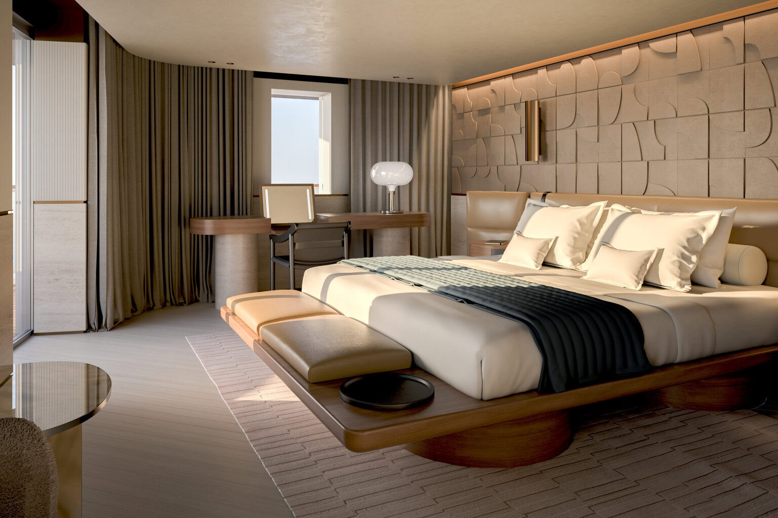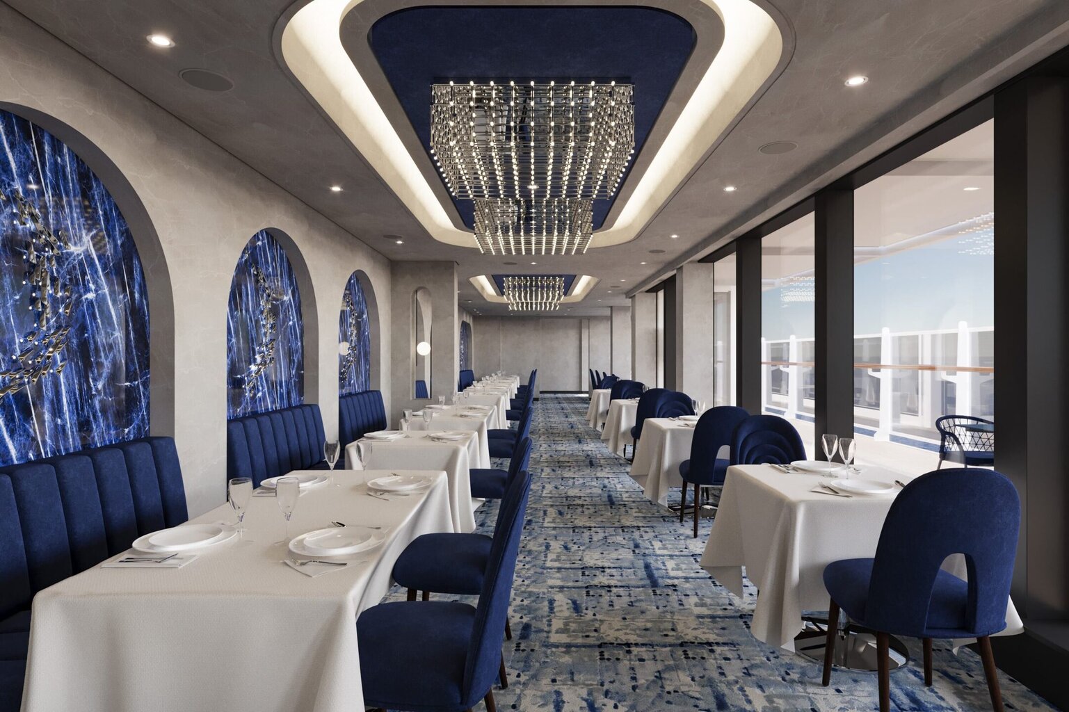 With 463 oceanfront suites, penthouses and residences, guests will enjoy feeling closer to the sea and in port thanks to their floor-to-ceiling windows and personal private terrace. Suites will start at 35 sqm (377 sq ft) which makes them among the most spacious for the luxury cruise category.