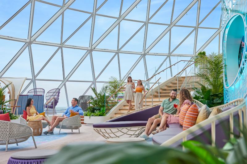 Save room for some extra splash —the new Icon of the SeasSMhas an allyou-can-swim buffet of unique pools to satisfy any mood you’re in. Take your pick of seven different pools, plus nine whirlpools.All with next-level ocean views, so you’ll always feel connected to the sea. Like The Hideaway, the first suspendedinfinity pool at sea, buzzing with beach club beats high in the sky. Cloud 17SM is your adults-only poolside oasis in a new stratosphere of chic. Frozen cocktails are on tap at The Lime & Coconut®bar spanning multiple levels, or you can dive in and order up at the largest swim-up bar at sea, Swim & TonicSM. It’s your day your way —soak up every minute.