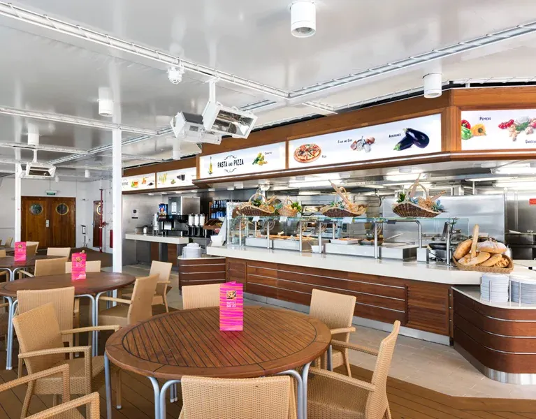 We’ve added spacious new cabins with balconies offering superb panoramic views and we have enlarged the restaurant and buffet areas to serve up an even greater variety of culinary treats. There is even a new 330 m² music and dance area for guests to show off their moves.