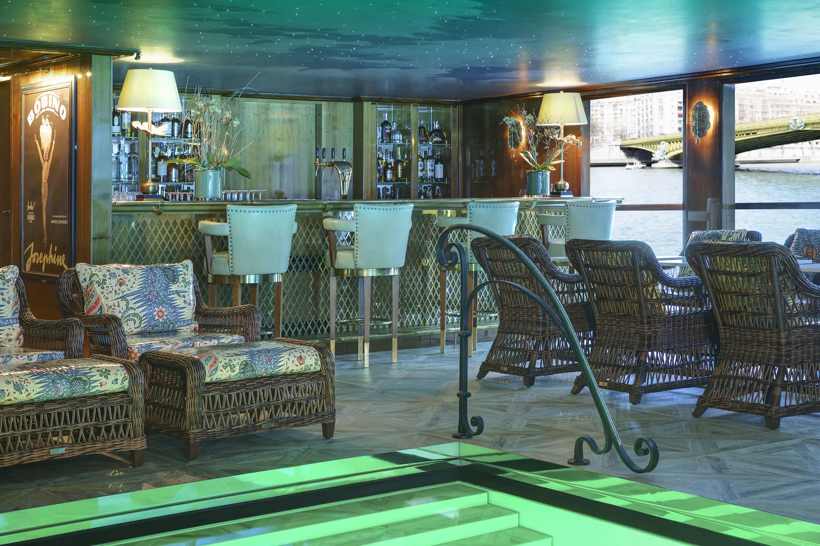 Lavishly appointed riverview stateroom (260 sq ft - 24 sq m) with a French balcony Handcrafted Savoir Beds of England, built-in closet, hair dryer, safe, individual thermostat, bottled water and flat-screen TV with infotainment center and satellite Marble bathroom with Asprey bath and body products, plush towels, towel warmer, cozy bathrobes and slippers