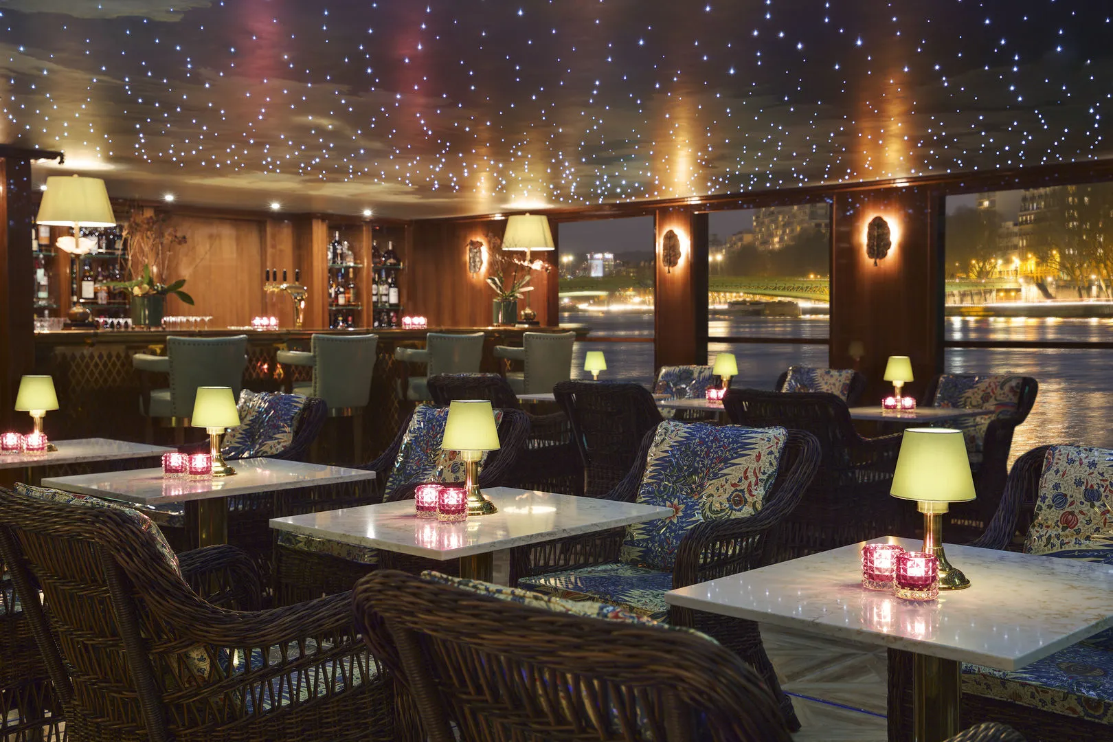 Lavishly appointed riverview stateroom (162-180 sq ft - 15-17 sq m) Handcrafted Savoir Beds of England, built-in closet, hair dryer, safe, individual thermostat, flat-screen TV with infotainment centre and satellite, and bottled water Marble bathroom with Asprey bath and body products, plush towels, towel warmer, cosy bathrobes and slippers