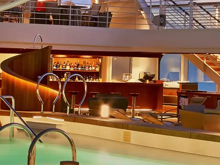 Seabourn Sojourn enchants her guests with an array of public areas scaled to encourage a relaxed sociability. One of the most unusual features of Seabourn Sojourn and her sisters is Seabourn Square, an ingenious “living room” that replaces the traditional cruise ship lobby with a welcoming lounge filled with easy chairs, sofas and cocktail tables; making it more inviting and relaxing on a small ship cruise. An enclave in its center houses knowledgeable concierges discreetly seated at individual desks.