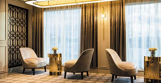 High atop the ship, this suite of more than 4,000 square feet rises above everything else at sea. Incomparable craftsmanship and meticulous attention to detail are evident in everything from the unique design choices, such as rare works of art, to grand features like an in-suite spa retreat — a first for any cruise ship. The only thing to rival the luxurious interior is the spectacular ocean view from the private balconies.