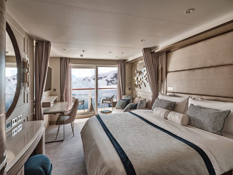 Our best-selling Premium Veranda Suite is more beautiful and luxurious than ever on board Silver Endeavour. This suite offers a large bedroom space with dreamy bedding, a stunning marbled bathroom with a large vanity and sumptuous walk-in shower. Comfortable furnishings and elegant decor make staying in (almost) as good as going out! Spacious and well-situated, enjoy ultra-luxury amenities from the 24-hour butler service to the well-stocked mini-bar (and yes, they’re all included!). The sofa-bed can easily accommodate a third guest.