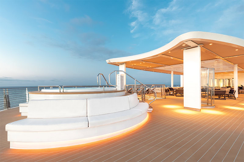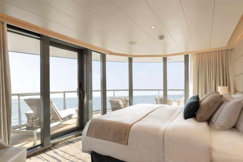 The name says it all; truly the apex of luxury, the Owner’s Suite is for those who want to experience the islands in comfort. A separate bedroom, modern bathroom with whirlpool bath with ocean views and elegant seating area ensure privacy and cosiness are the name of the game, while the vast veranda means full island immersion is assured. Large veranda with patio furniture and floor-to-ceiling glass doors. Living room with sitting area. Separate dining area. Twin beds or king-sized bed. A choice of pillows. Bathroom with double vanity, plus a powder room. Ocean-view whirlpool bath and separate shower. Walk-in wardrobe(s) with personal safe. Vanity table(s). Writing desk(s). 2 large flat screen TVs. Premium sound system. Premium coffee station. Binoculars. Laundry service. Unlimited Premium Wifi.