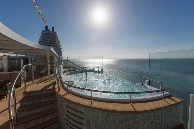 The Otium Suite is one of our newest and finest suites. Located in the premium aft corner position, the Otium Suite has a total size of 123 m2 (1,324 sq. ft.), including a 40 m2 (431 sq. ft.) balcony, which comes complete with a whirlpool. Features include a spacious living room area, a luxurious walk-in closet, a separate large bedroom, plus a bathroom with a whirlpool and walk-in shower. The crowning glory of the Otium Suite however must surely be its unprecedented 270 degree view, giving you some of the best views of your destination possible.