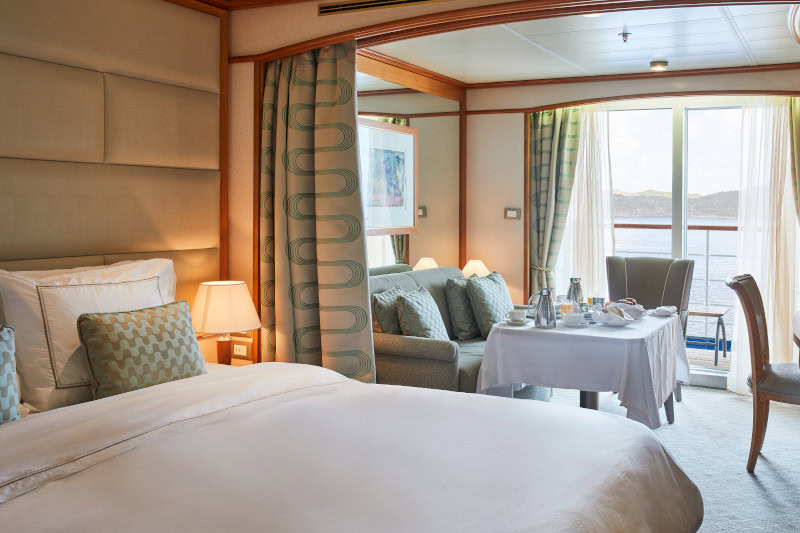 Stylish and sophisticated. Separate dining and living rooms. Larger verandas. Situated midship. Perfection in design for comfortable living. Silver Suites accommodate three guests.