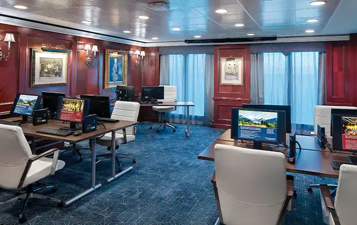 Named for their sweeping views over the ship's bow, the four Vista Suites each sprawl over 786 square feet. Every imaginable comfort is here, including a second bathroom for guests as well as a master bathroom newly redesigned in onyx and granite with a luxurious new shower. Relax on the private teak veranda, listen to music in enhanced surround sound or watch a movie on one of two flat-screen televisions. Access wireless Internet on a complimentary iPad.
